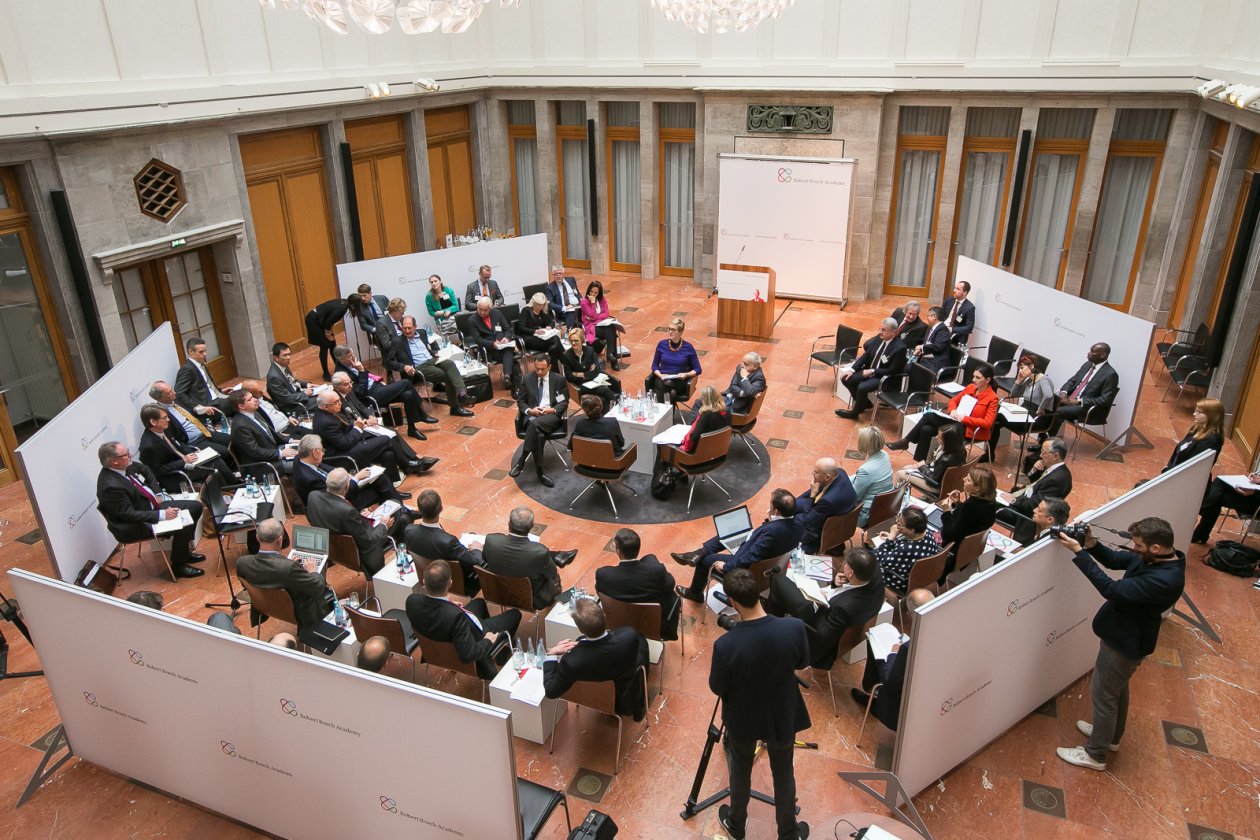 Am Vormittag stand der Umgang mit globalen Krisenherden, die in den vergangenen Jahren entstanden sind, auf der Agenda. Ghassan Salamé, Dekan der Paris School of International Affairs, Sciences-Po Paris, blickte in seinem Impulsvortrag auf den Stellenwert von Krieg in der historischen Entwicklung: Dieser schien nach dem Ende des Kalten Krieges an Bedeutung verloren zu haben. Marktwirtschaft und Demokratie als dominierende Systeme sowie die Interdependenzen der Globalisierung hätten ideologisch motivierte Konflikte eingedämmt. Vor rund zehn Jahren seien jedoch neue, hybride Konfliktformen entstanden: Die Kriegsparteien seien nicht mehr eindeutig erkennbar und die Ursachen vielschichtiger. Krieg werde wohl immer Teil unserer Gesellschaft sein, resümierte Salamé. Heute werde Krieg jedoch häufig banalisiert. Außerdem würden wir uns zu oft dafür entscheiden, Konflikte und ihre Ursachen nicht verstehen zu wollen.